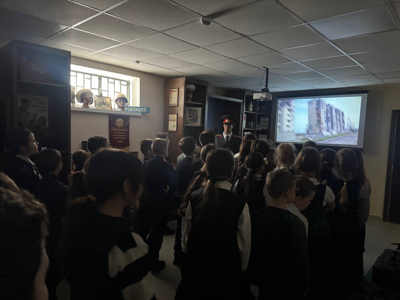 Стражи правопорядка рассказали школьникам о создании музея, продемонстрировали экспонаты, иллюстрирующие различные исторические периоды полиции, милицейскую форму, а также средства связи и передвижения старого образца.