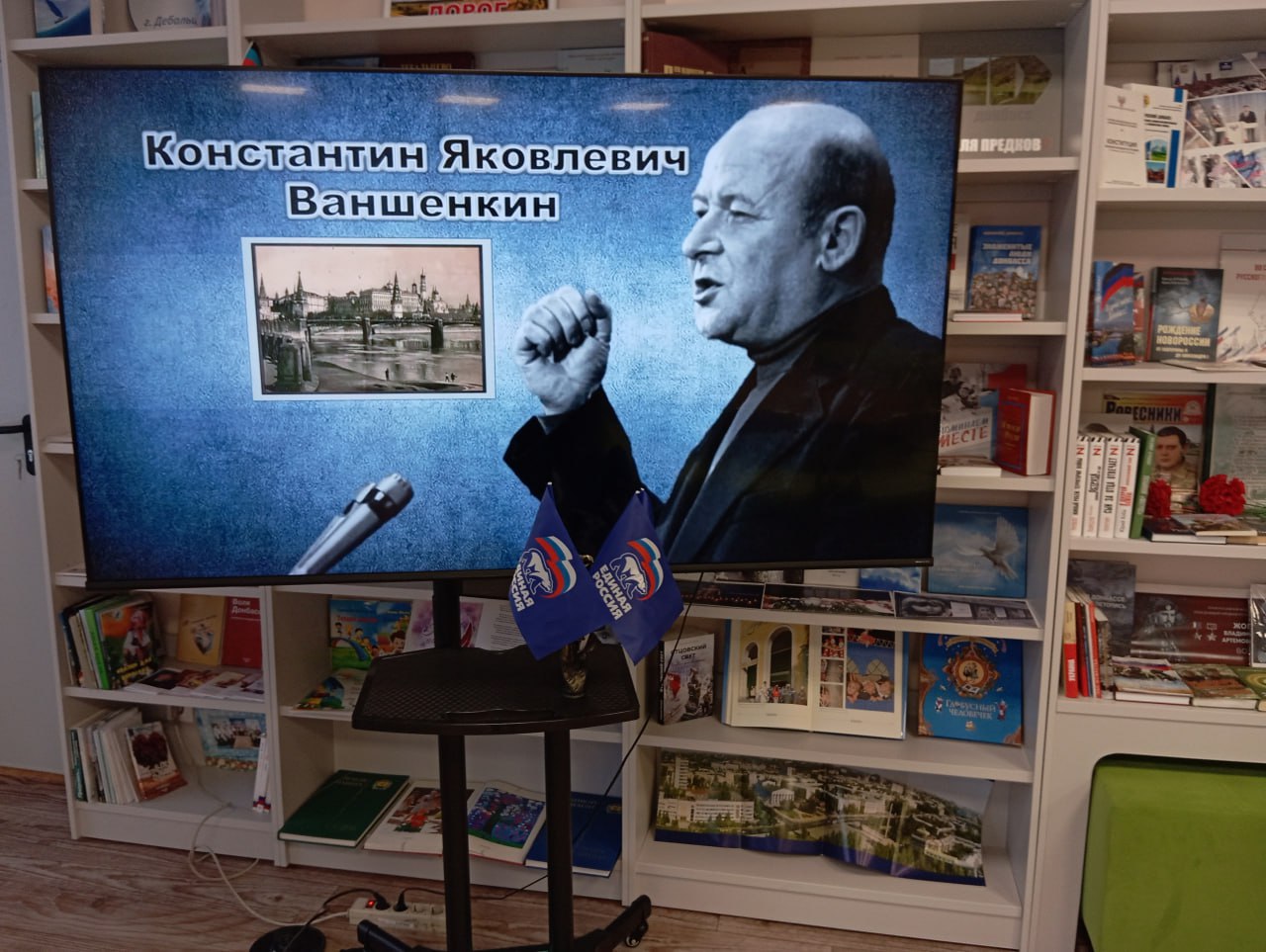 По партийному проекту «Культура малой Родины» и работы Центра популяризации русского языка и культуры «Русское слово» сотрудник центральной городской библиотеки Груберт И.Н. для пользователей читального зала провела час поэтического слова «Стихи о любви, войне и жизни». Она рассказала, что широкую известность Константину Ваншенкину принесло написание стихов к песням авторами музыки, большинства которых были Эдуард Колмановский и Ян Френкель. Наиболее прославили Ваншенкина песни «Я люблю тебя, жизнь», ставшая его визитной карточкой, «Алеша», «Вальс расставания», «Женька», «Как провожают пароходы».