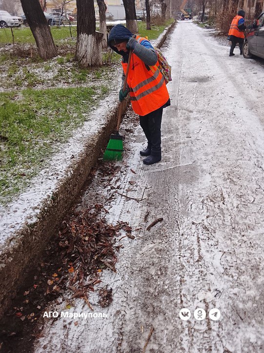 Коммунальщики провели уборку придомовых территорий в трех районах Мариуполя