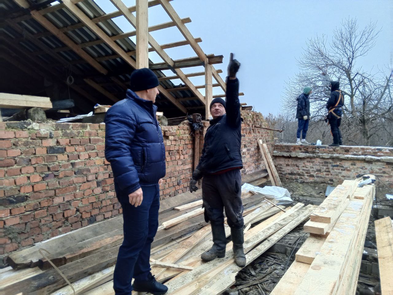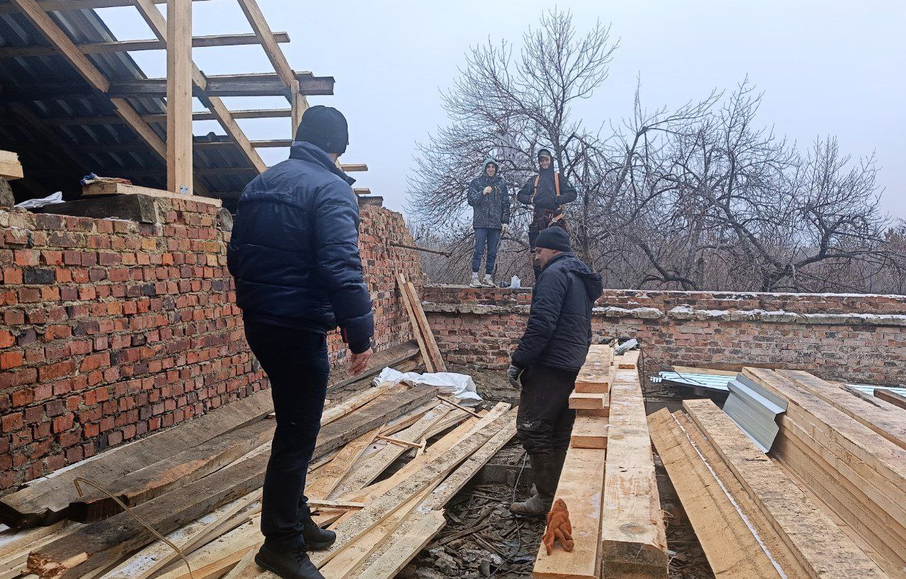 В этом году здесь наконец-то начат ремонт. Строители в рамках разработанного проекта заменят поврежденную обстрелами кровлю, отремонтируют помещения, установят новые окна взамен выбитых осколками. Сейчас возрождение Дворца пока еще находится на начальном этапе, но мастера работают споро, слаженно. Начали восстановление с кровли. Работа здесь кипит, в чем убедился, осмотрев Дворец и пообщавшись с рабочими и представителями подрядной организации.