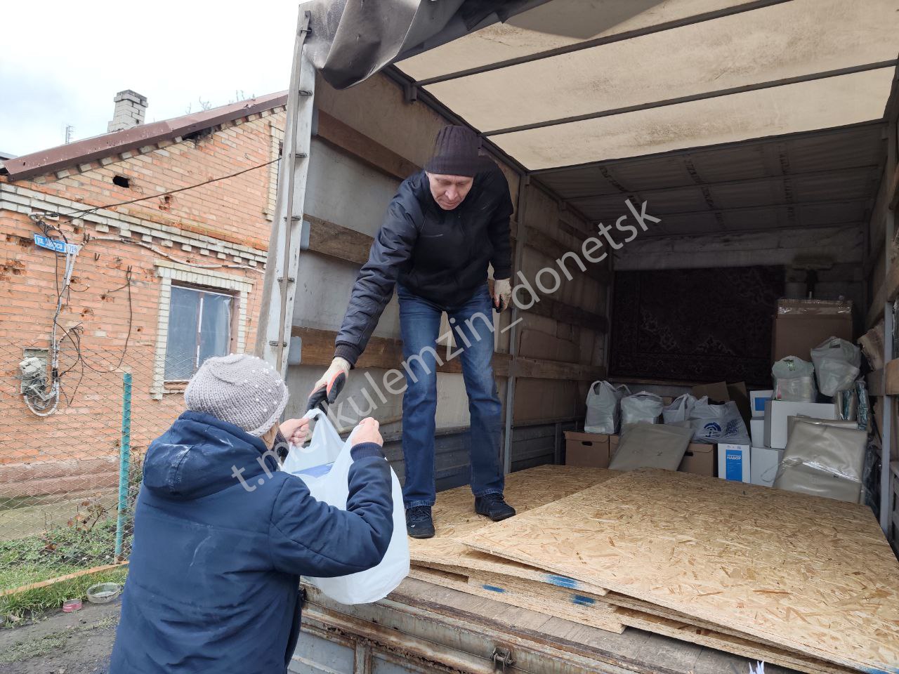 Сегодня при содействии администрации г.о. Донецк представители «Центра развития регионов» выдали продукты питания, средства гигиены и стройматериалы жителям пгт Великая Новосёлка.