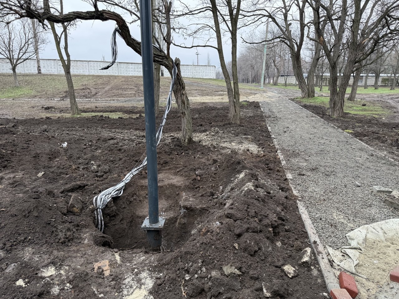 Особое внимание уделено восстановлению монумента между прогулочными аллеями. Он состоит из двух шахтных копров, на которых планируется разместить QRкод с информацией об истории градообразующего предприятия — шахты «Комсомолец Донбасса».
