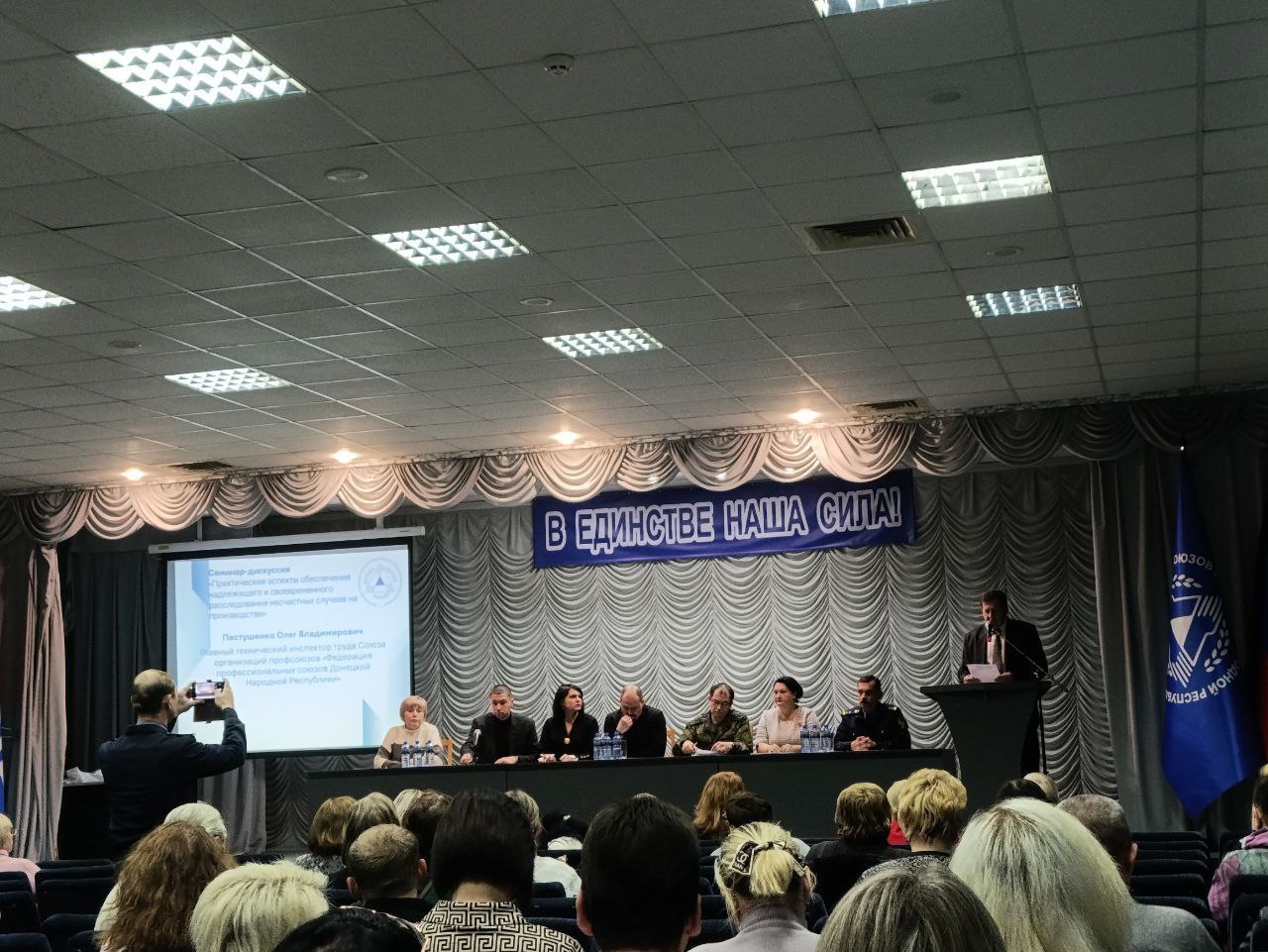 Государственный инспектор труда Савельева Елена Ивановна приняла участие в семинаре-дискуссии, организованном Союзом организаций профсоюзов «Федерация профессиональных союзов Донецкой Народной Республики», для профсоюзного актива, работодателей и специалистов по охране труда предприятий, учреждений и организаций.