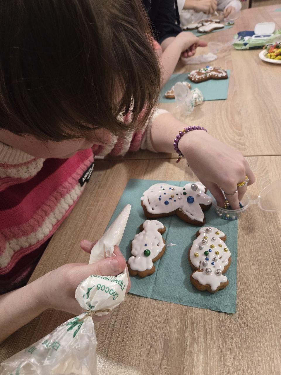 Специалисты центра провели для ребят два увлекательных мастер-класса. Первый, под названием «Рождественский сапожок», был посвящен технике объемной аппликации. Дети с азартом погрузились в мир красок, бумаги и фантазии, создавая свои уникальные праздничные украшения. Второй мастер-класс по росписи «Имбирного пряника» позволил юным талантам проявить свою художественную натуру, превращая ароматные пряники в настоящие произведения искусства.