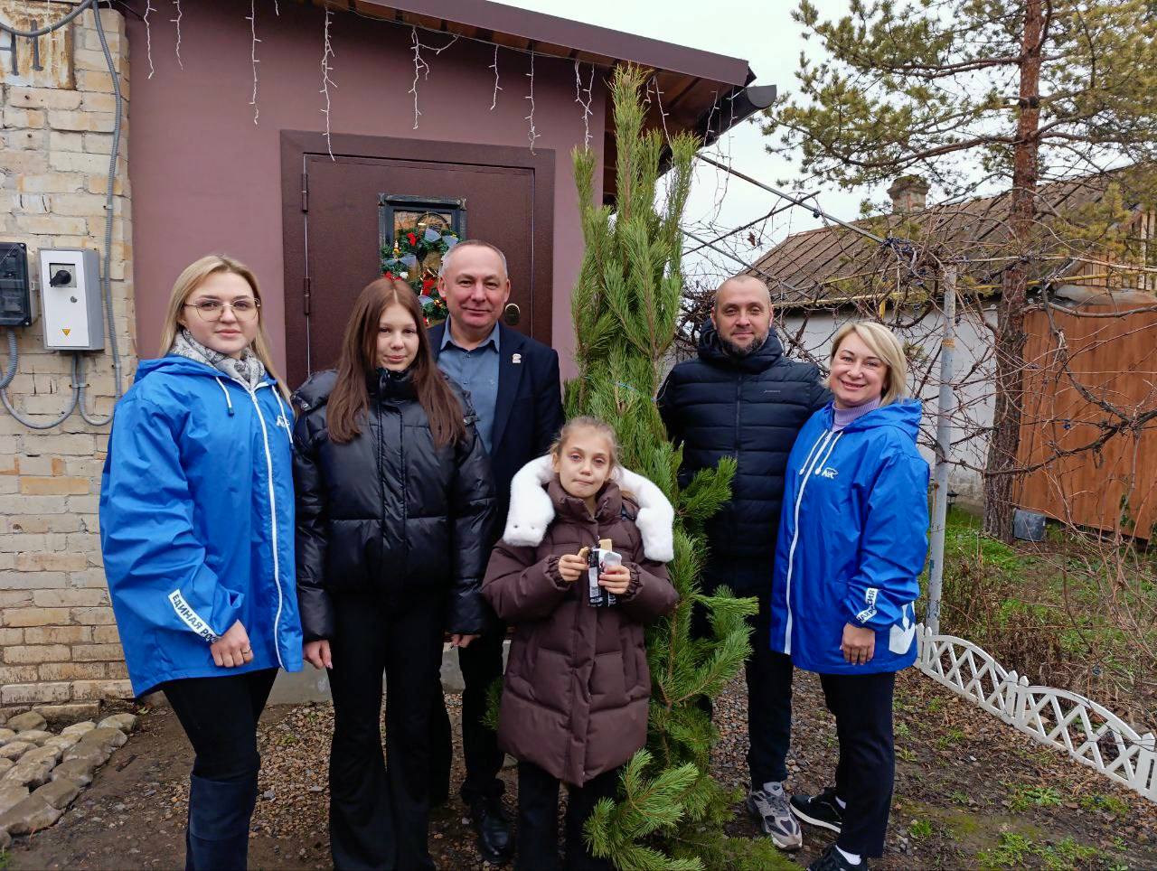 В этот прекрасный день пожелал семье любви и благополучия, успехов и вдохновения, счастливых праздничных дней, приятных сюрпризов и хорошего настроения. Вручил детям подарки, сладости и главную новогоднюю красавицу – Ёлку.