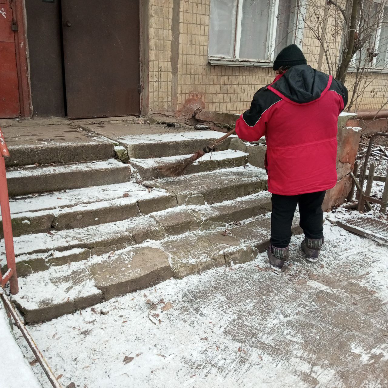 - посыпка противоголёдными смесями тротуаров, внутриквартальных проездов, подходов к жилым домам и ступеней.