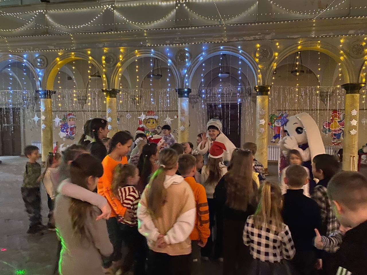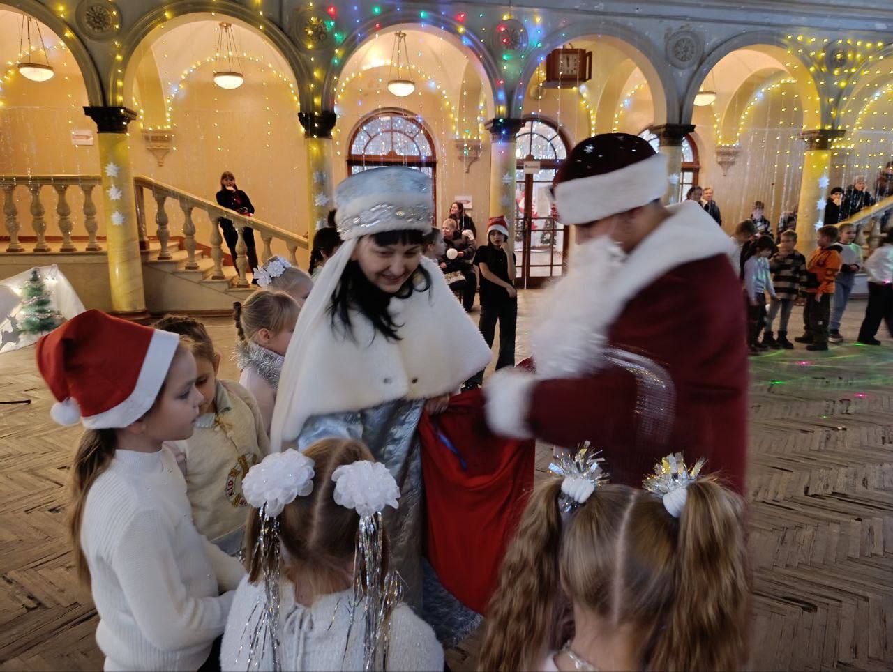 по-новогоднему блестящие гирлянды и фонариками украшенные фойе, снежные картинки на окнах, зажигательная игровая программа со сказочными персонажами и конечно же, традиционно сладкие подарки. Благодарим за предоставленные сладости детям ИП "Остроушко" магазин "Фуршет".