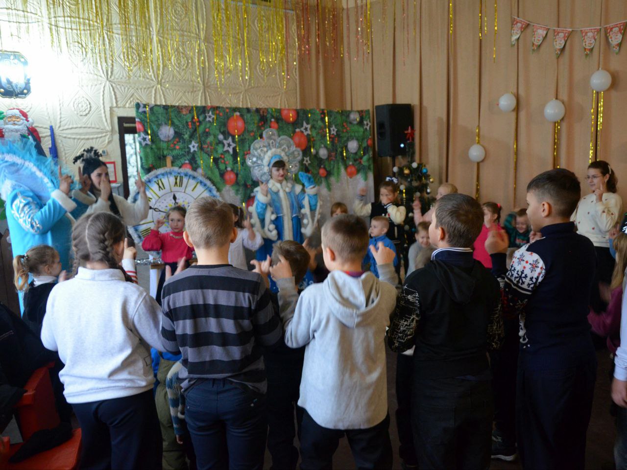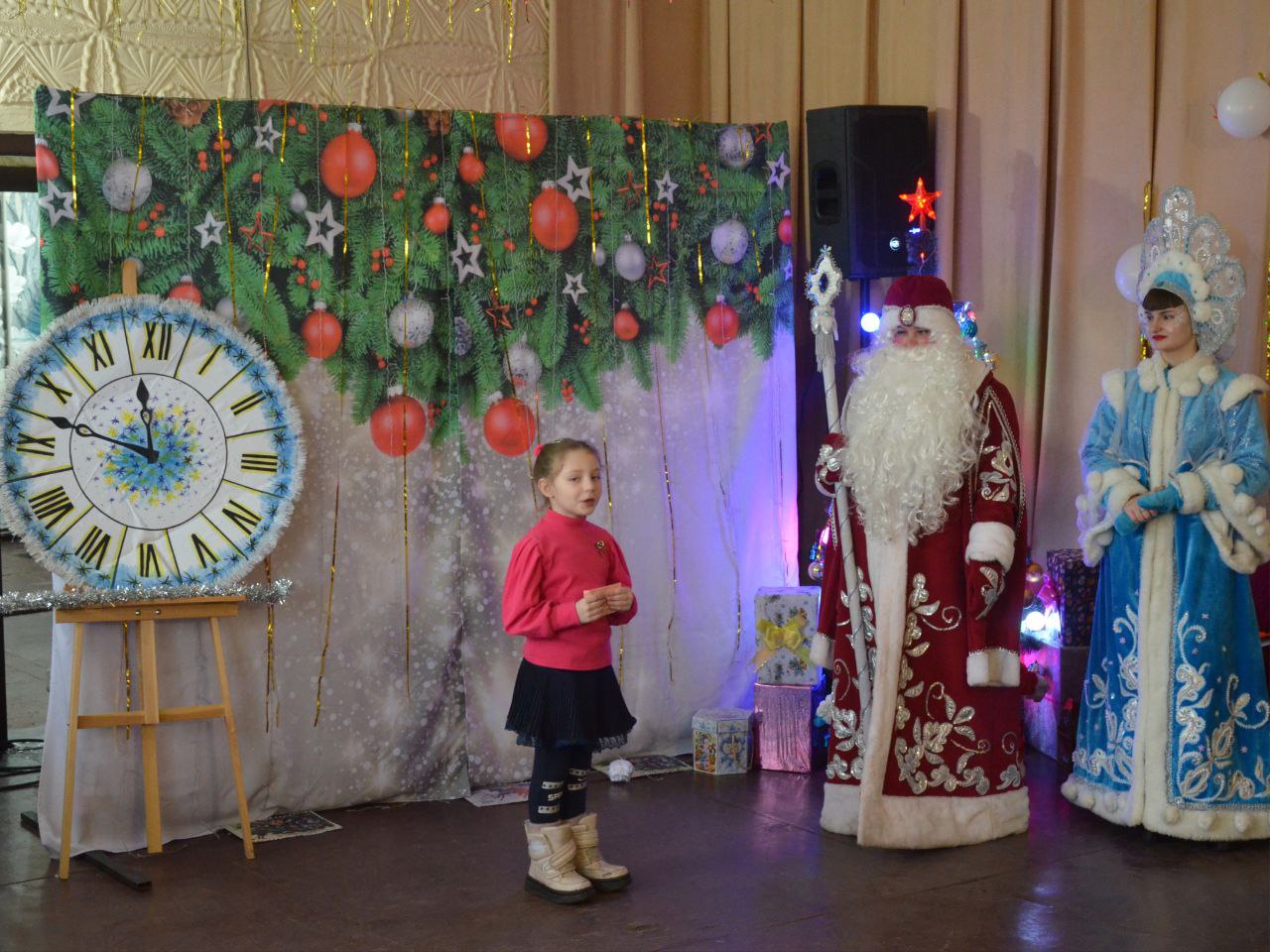Для юных жителей села работниками Шахтерского Дворца культуры было подготовлено зимнее сказочное представление с веселыми конкурсами и хороводами. Главным событием праздника стала незабываемая встреча с Дедом Морозом, Снегурочкой и Снежной королевой.