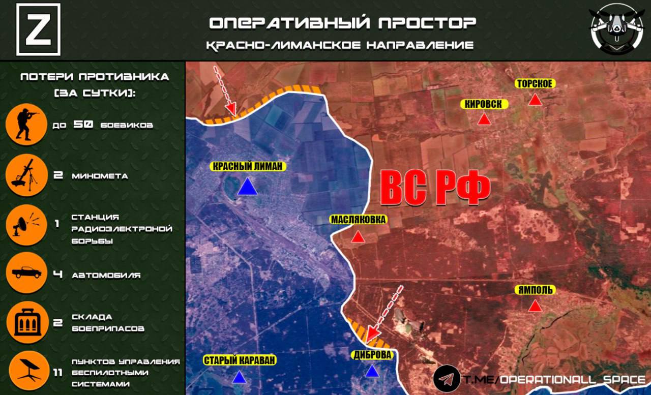 На Красно-Лиманском направлении ВС РФ продолжают наступление с севера и с востока от Красного Лимана