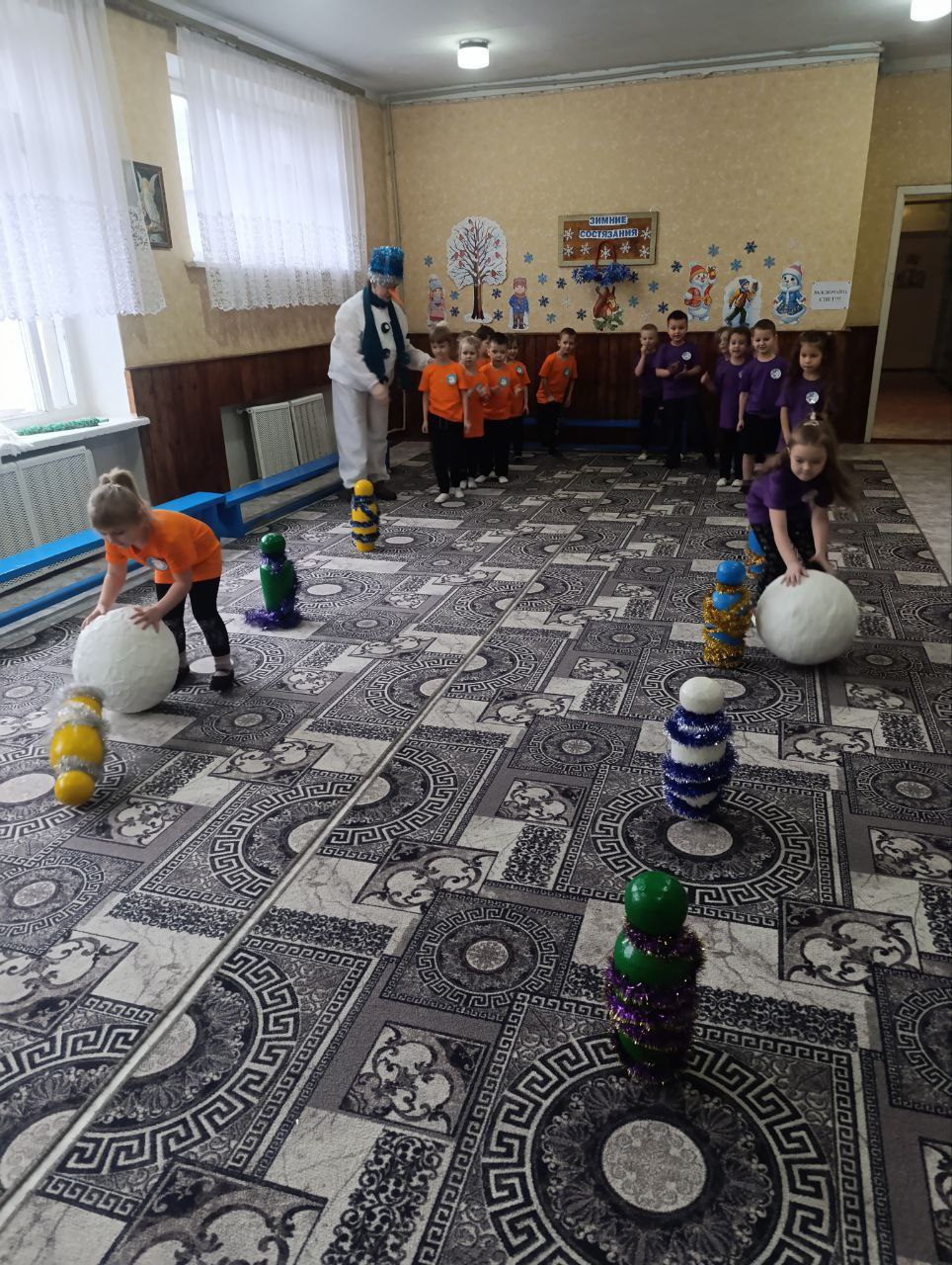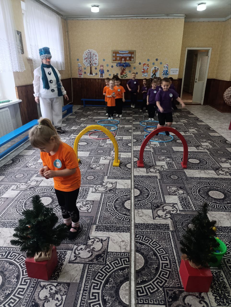 Гость праздника — весёлый Снеговик пригласил ребят в захватывающее путешествие по зимним спортивным состязаниям.