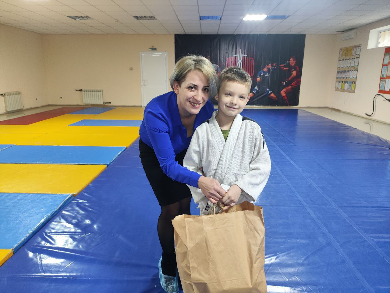 с радостью встретили гостей, зачитали новогодние стихотворения, получили сладкие подарки, фрукты и наборы канцелярии. Искренние благодарности детворы наполнили атмосферу праздника.