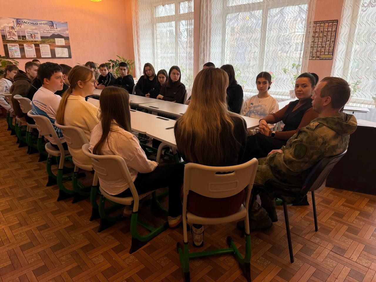 Старшеклассники активно задавали вопросы о службе, о трудностях и радостях воинской жизни, о понимании героизма в современных условиях.