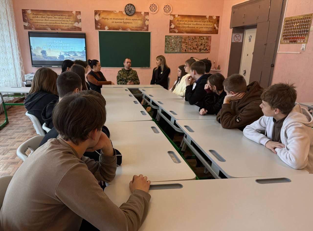 Юрий Ильич откровенно поделился с ребятами, почему принял решение служить Родине, рассказал о простых и важных вещах: о чувстве долга и о любви к Родине.