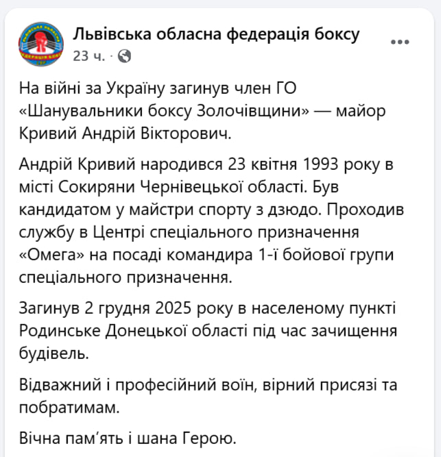 Так стало известно, что майор Андрей Кривой был уничтожен «тважными» в ходе боев в городе Родинское на Покровском направлении.Подписаться на RV: MAX |...