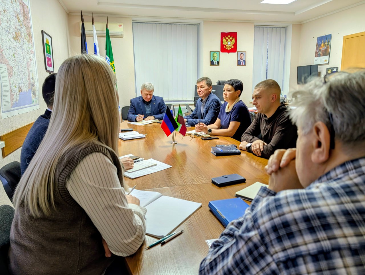 Провел оперативное совещание по текущим вопросам. Обсудили ситуацию в округе, доложили о выполнении данных ранее поручений, определили первостепенные задачи на сегодня, дал соответствующие поручения.