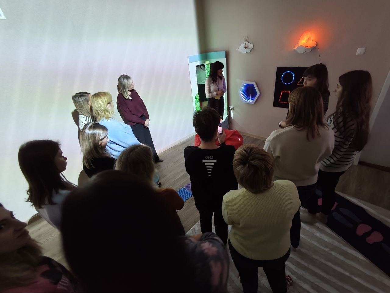 Педагоги не только изучили теорию организации занятий в сенсорной среде, но и на практике испытали работу «Лабиринта чудес». Они оценили, как световые, звуковые, тактильные и динамические модули влияют на восприятие и играют важную роль в развитии ребёнка.