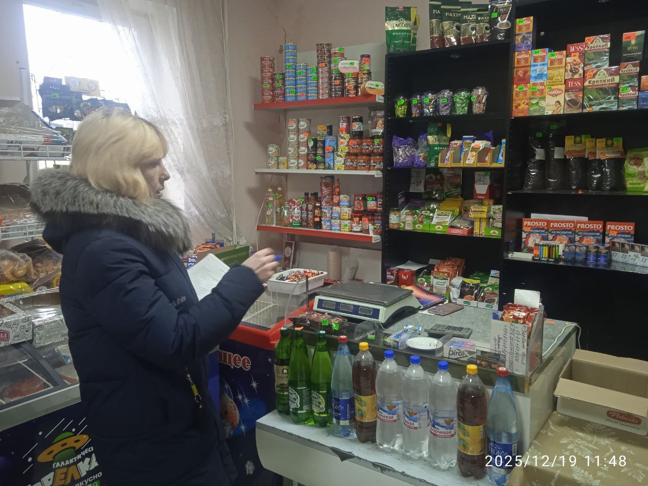 В поселке Красный Партизан Ясиноватского округа прошел плановый рейд народного контроля по соблюдению правил торговли и санитарных норм.