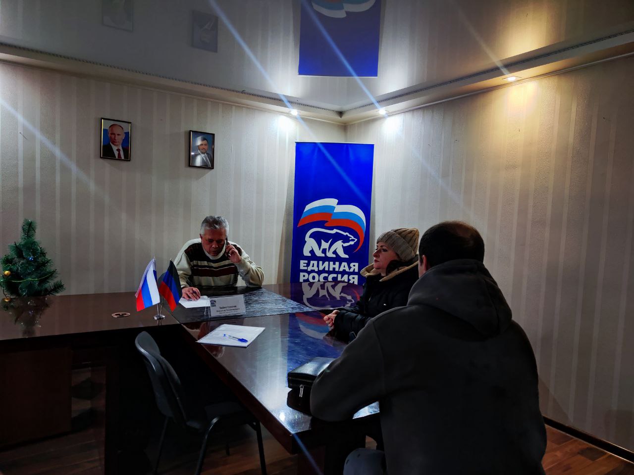 Состоялся прием граждан. Сегодня, 22 декабря, в Общественной приёмной Партии «Единая Россия» города Тореза депутат фракции "Единая Россия" Торезского городского совета Зайнутдинов Владимир Владимирович провел прием граждан