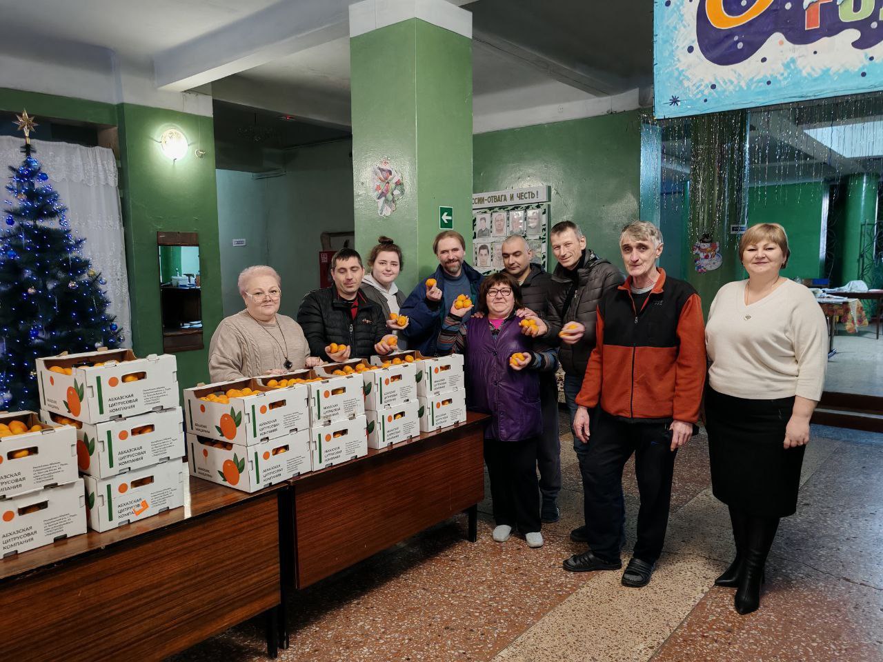 Активистки «Совета женщин города Макеевки» встретились с переселенцами в ПВР, поздравили их с наступающим Новым годом и порадовали самыми яркими фруктами зимы - мандаринами!