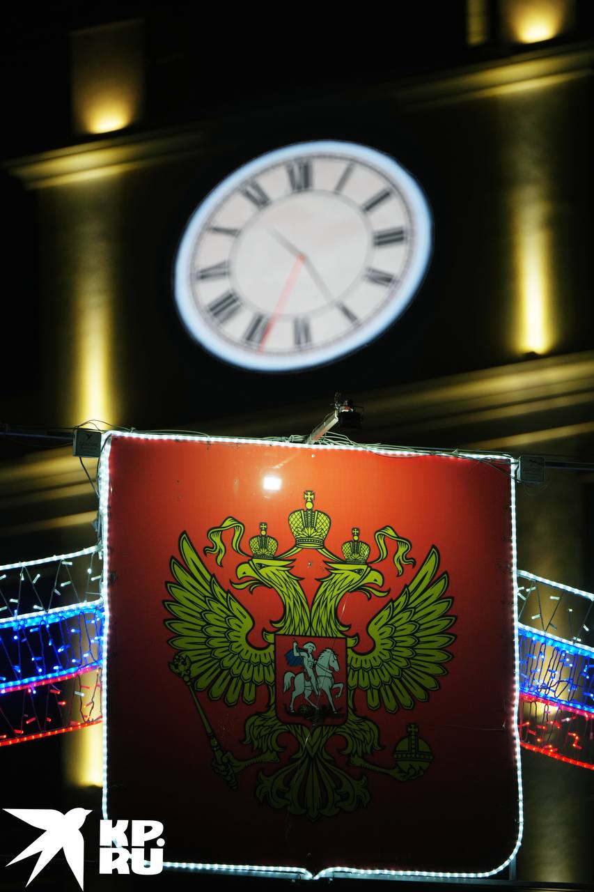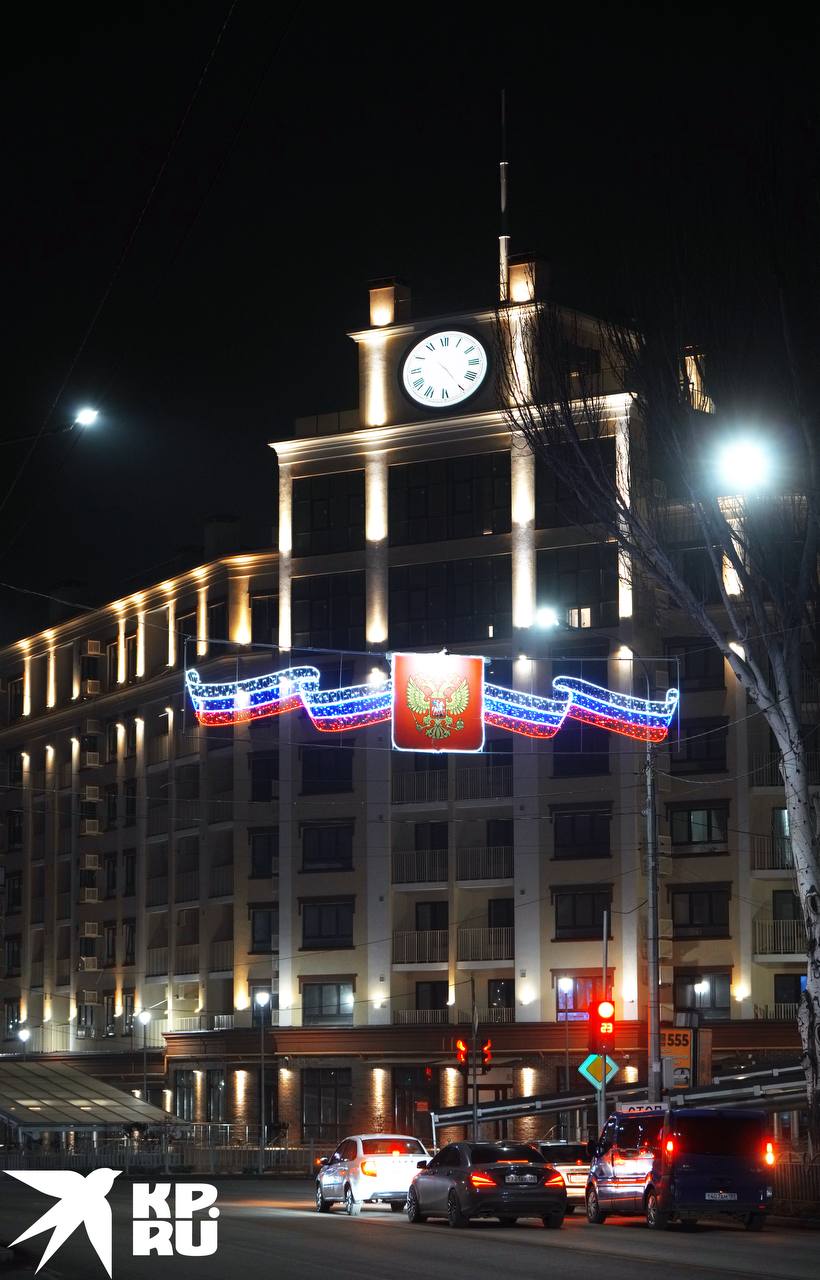 Мариупольский дом с часами ночью. Выглядит завораживающе.