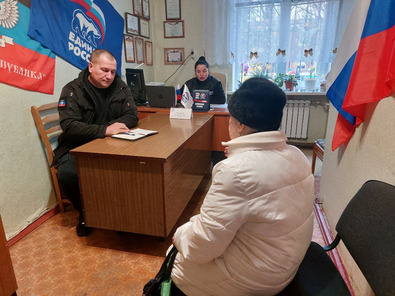 23 декабря 2025г., заместитель главы администрации городского округа Дебальцево Валерий Бессараб, провёл личный прием граждан в местной общественной приёмной Дебальцевского местного отделения Партии "Единая Россия" в посёлке городского типа Мироновский.