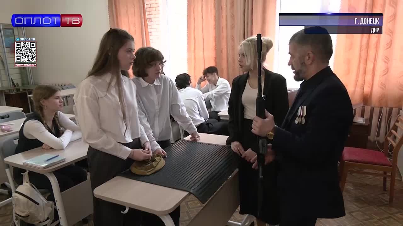 Правильно обращаться с автоматом и оказывать первую медицинскую помощь. Этому учат ребят в 122-ой гимназии Донецка.