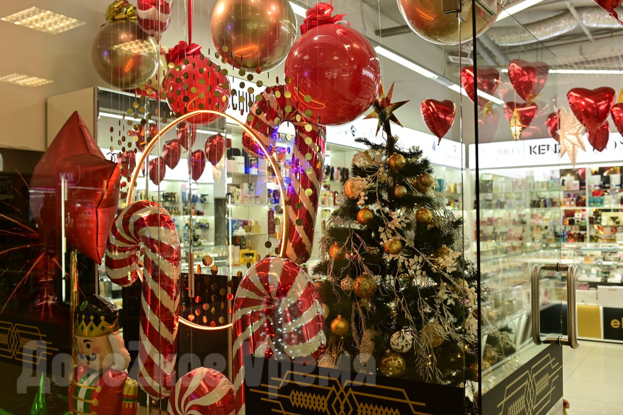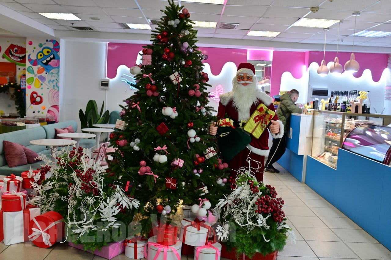 Новогодние ели, гирлянды, Деды Морозы и другой декор встречает посетителей на каждом этаже торгового центра, на лестничных пролетах и в торговых секциях. Очень эффектно смотрится и арочная иллюминация на улице.