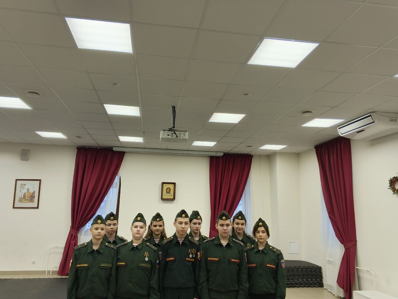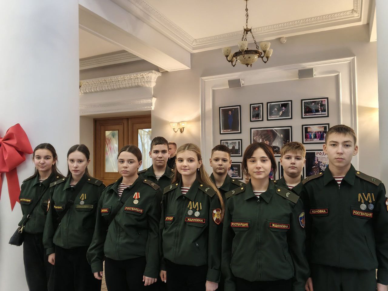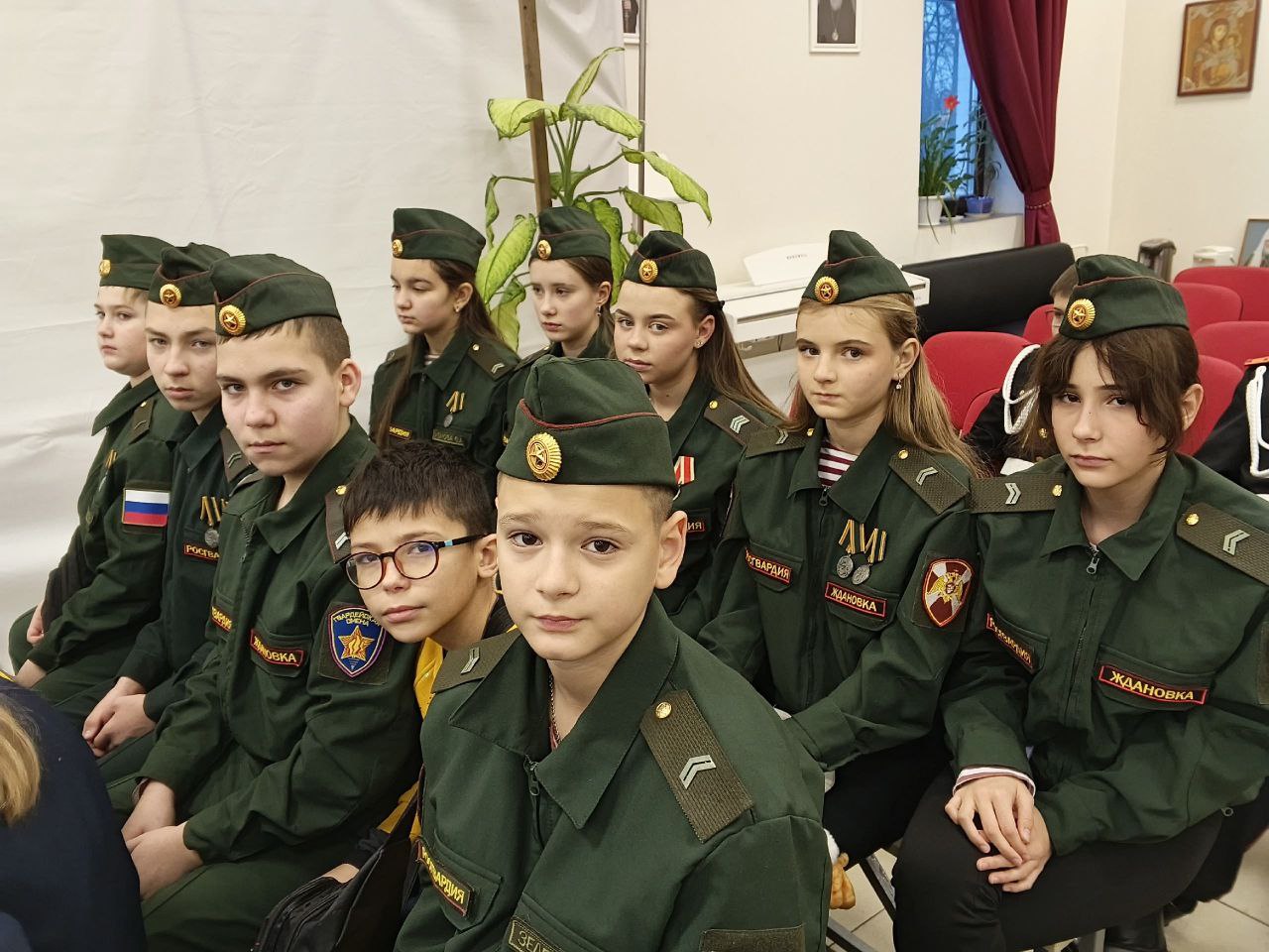 После ребята посмотрели тематический концерт ансамбля песни и пляски ОДОН войск национальной гвардии. Гвардейцы получили новогодние подарки от благотворительного фонда «Победоносец».
