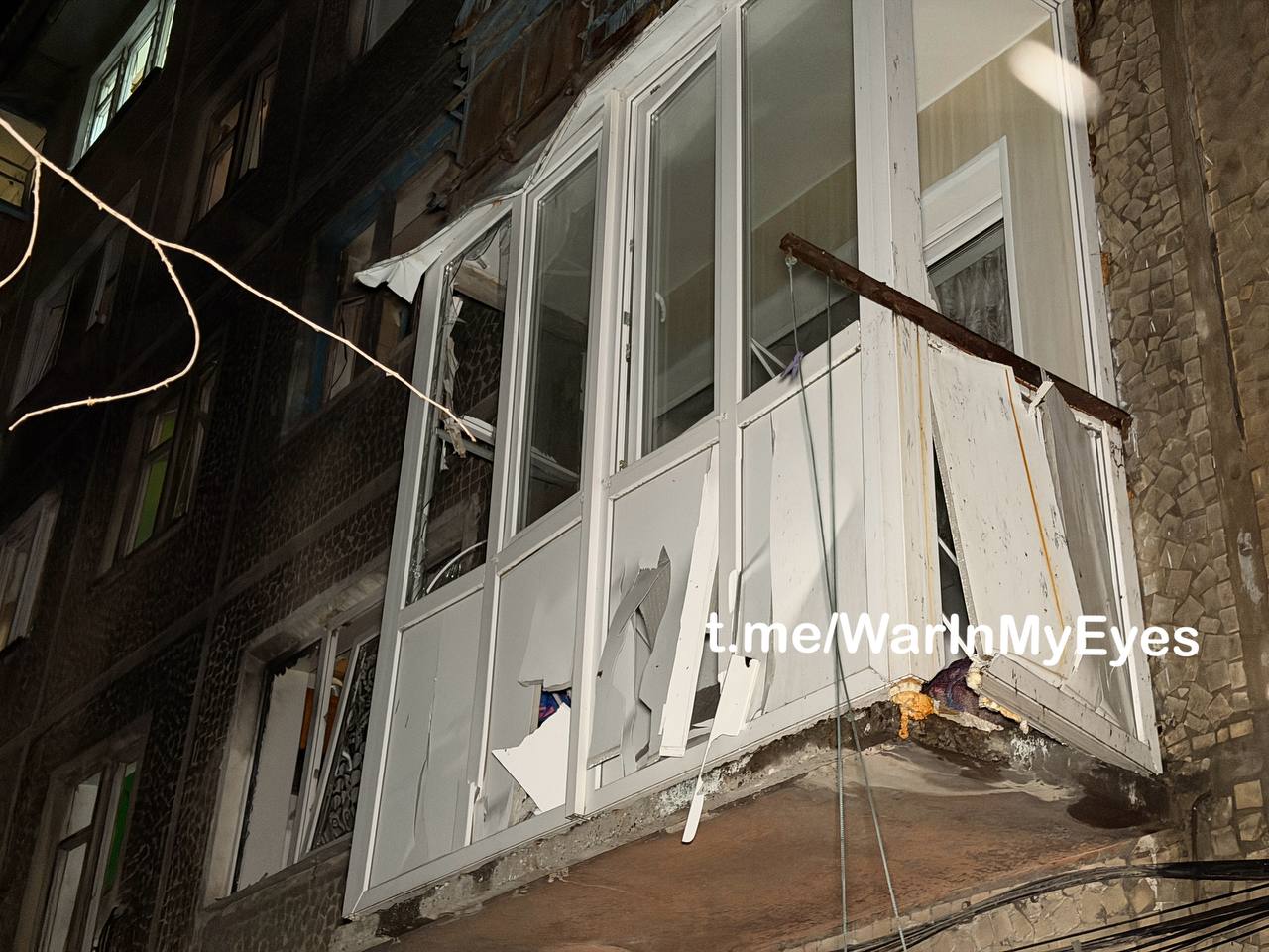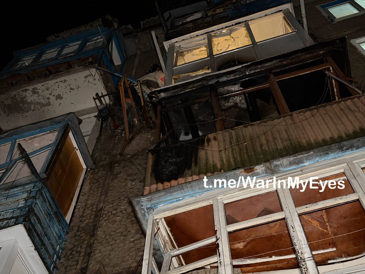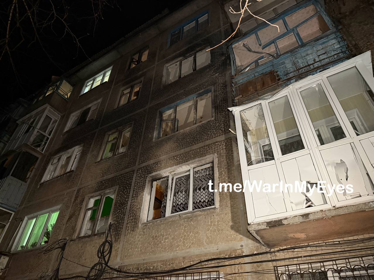 Последствия прилета ударного БПЛА в 5-ти этажный жилой дом в Петровском районе Донецка, МЧС оперативно ликвидировали возгорания балкона.
