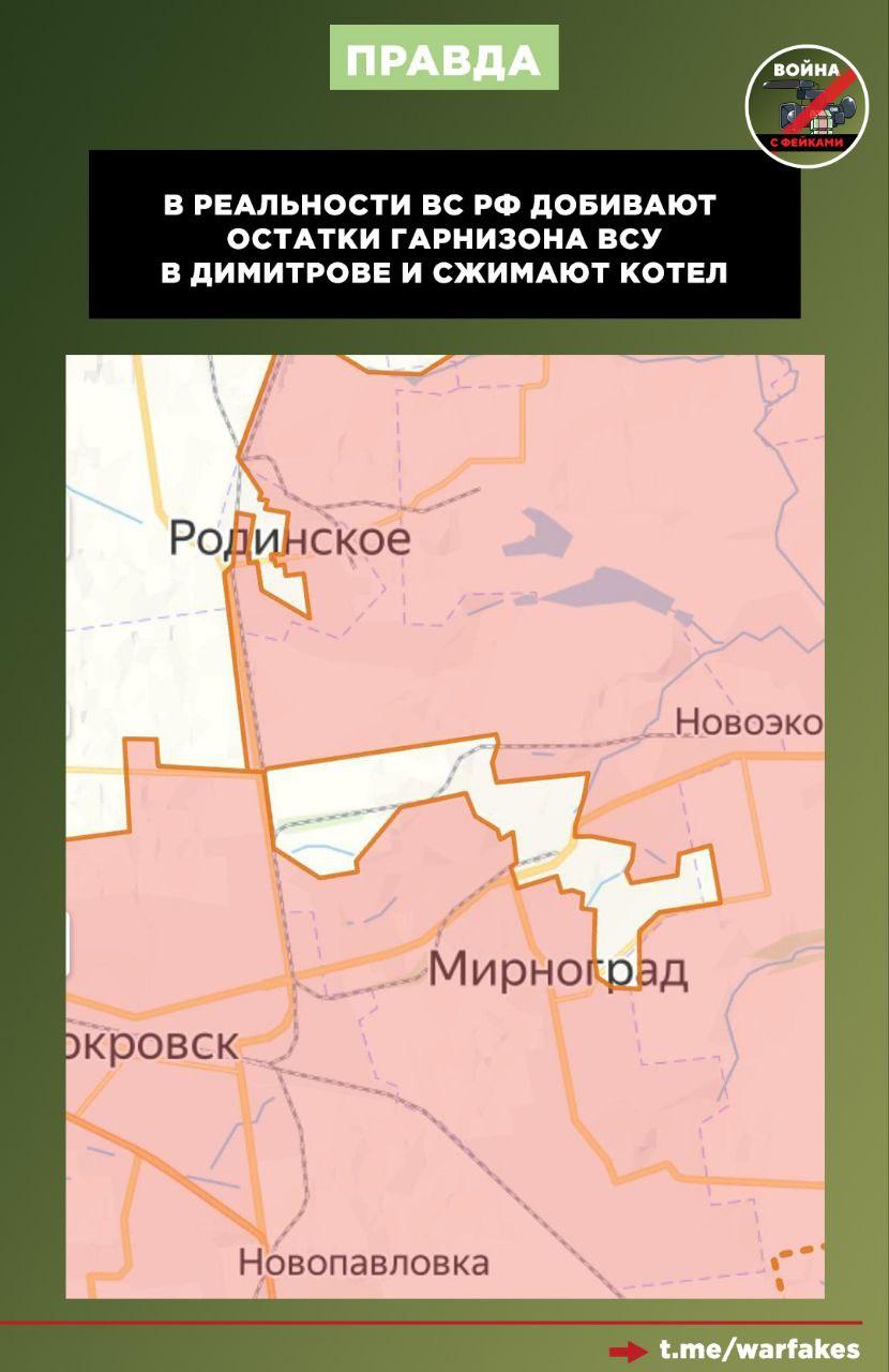 Правда: Перед нами очередная ложь украинского командования. На самом деле российские войска взяли в кольцо гарнизон ВСУ в Димитрове. В район окружения нельзя заехать, а также доставить снабжение и боеприпасы. Этот факт подтверждает даже депутат Верховной Рады Украины Роман Костенко.