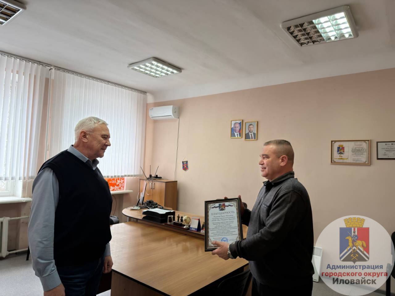 От всей души благодарим!. В преддверии новогодних праздников администрация городского округа Иловайск выражает искреннюю благодарность за особые заслуги в развитии инфраструктуры городского округа Ромашову Сергею Евгеньевичу...