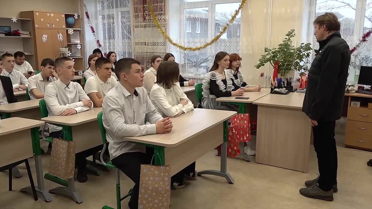 В преддверии Нового года они вручили подарки детям и педагогам, а для учащихся 9–11-х классов провели профориентационные уроки о строительных специальностях.