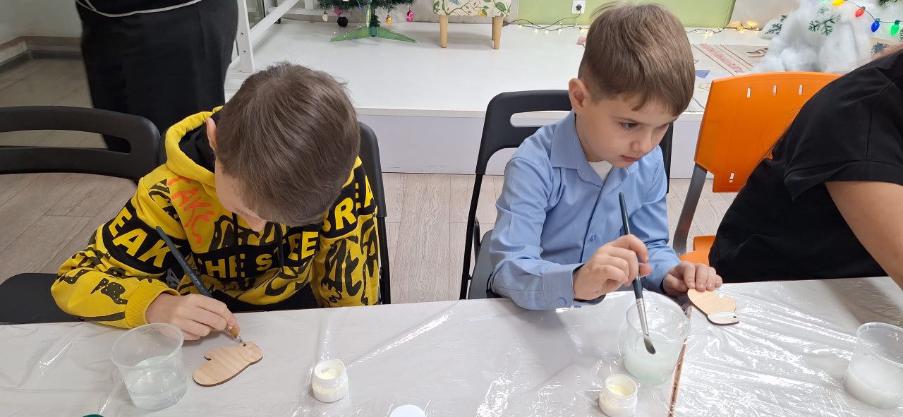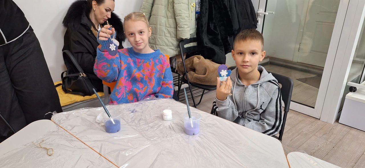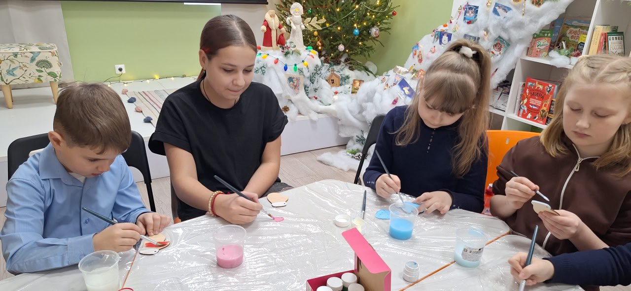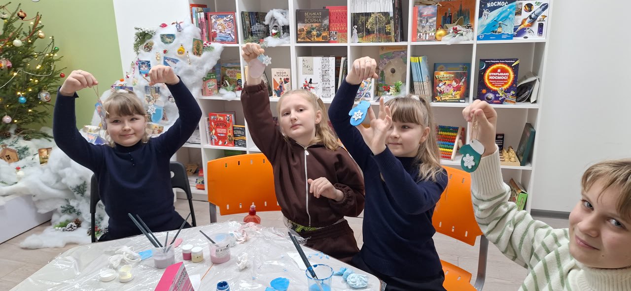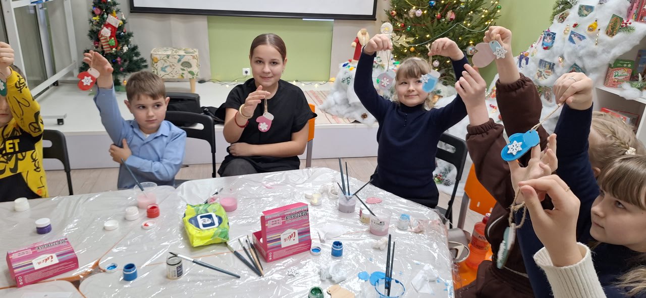 Ребята в возрасте от 7 до 12 лет своими руками при помощи кисти, красок и элементов декора создавали маленькую зимнюю сказку, которая станет не только чудесным украшением праздничной ёлочки, но и замечательным подарком для близких и друзей.