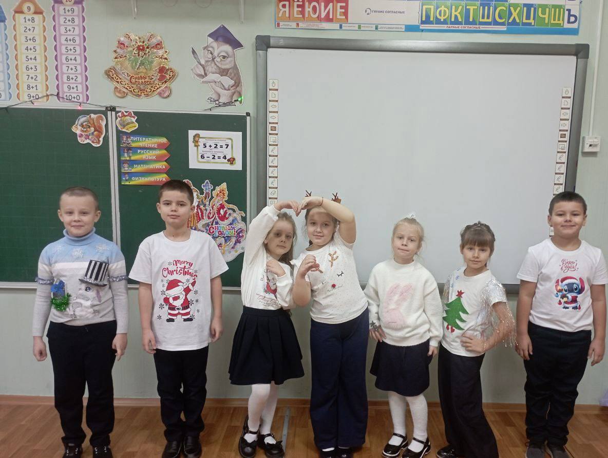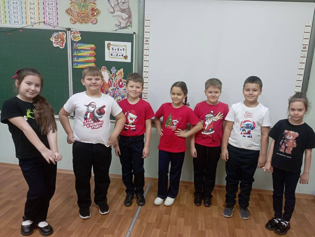 Все ребята и педагоги дружно надели яркие новогодние свитера и футболки, создавая настоящую праздничную атмосферу.