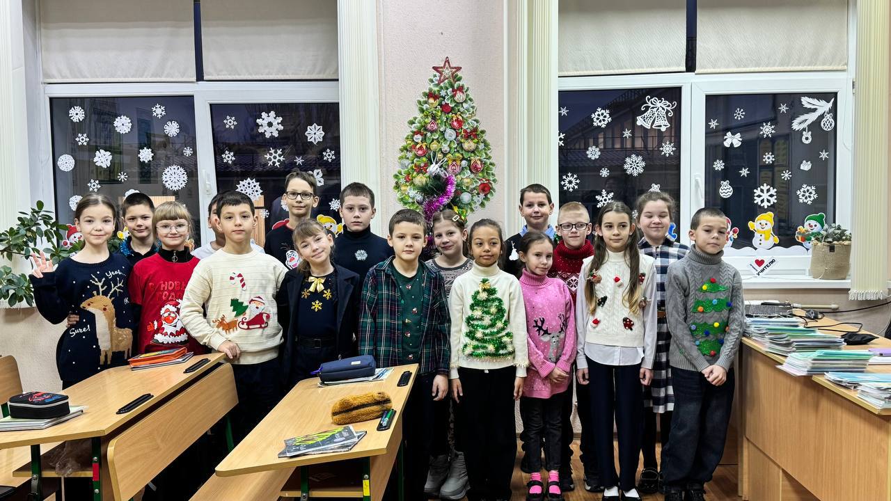 В Тельмановской гимназии сегодня прошел первый тематический день: «День новогоднего свитера!»