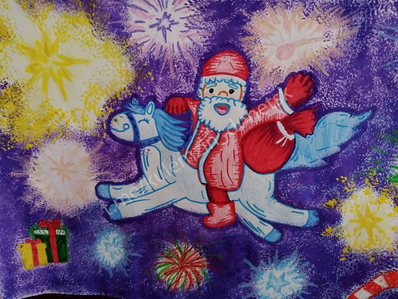 Юные художники изобразили разнообразные сюжеты, пронизанные атмосферой праздника: снежинки, ёлки, Дед Мороз и Снеговик, зимние пейзажи. Их работы наполнили пространство теплом, радостью и ожиданием чуда.