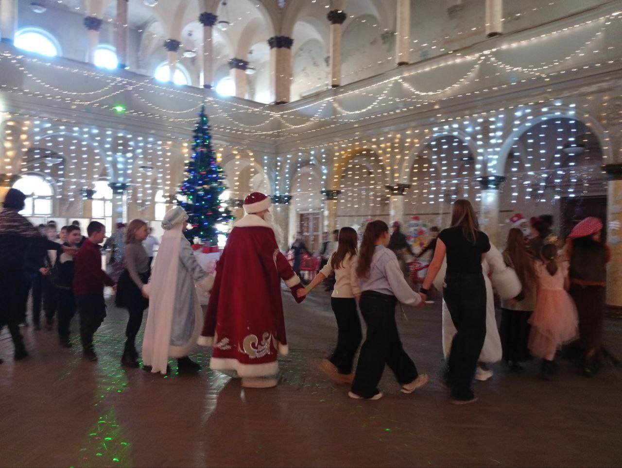 Сегодня, 25 декабря, в МБУ Зугрэсский ГДК, при участии студентов групп 2Э-9-24, 1Э-9-25 Зугрэсского энерготехнологического колледжа, с танцевальной поддержкой от молодёжного клуба современного танца "ORION", у учащихся 5 классов ГБОУ "Зугрэсская средняя школа номер 10 г.о. Харцызск" Состоялся волшебный праздник "Новогодний переполох".