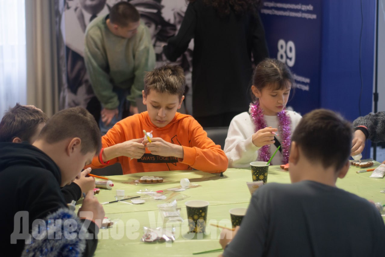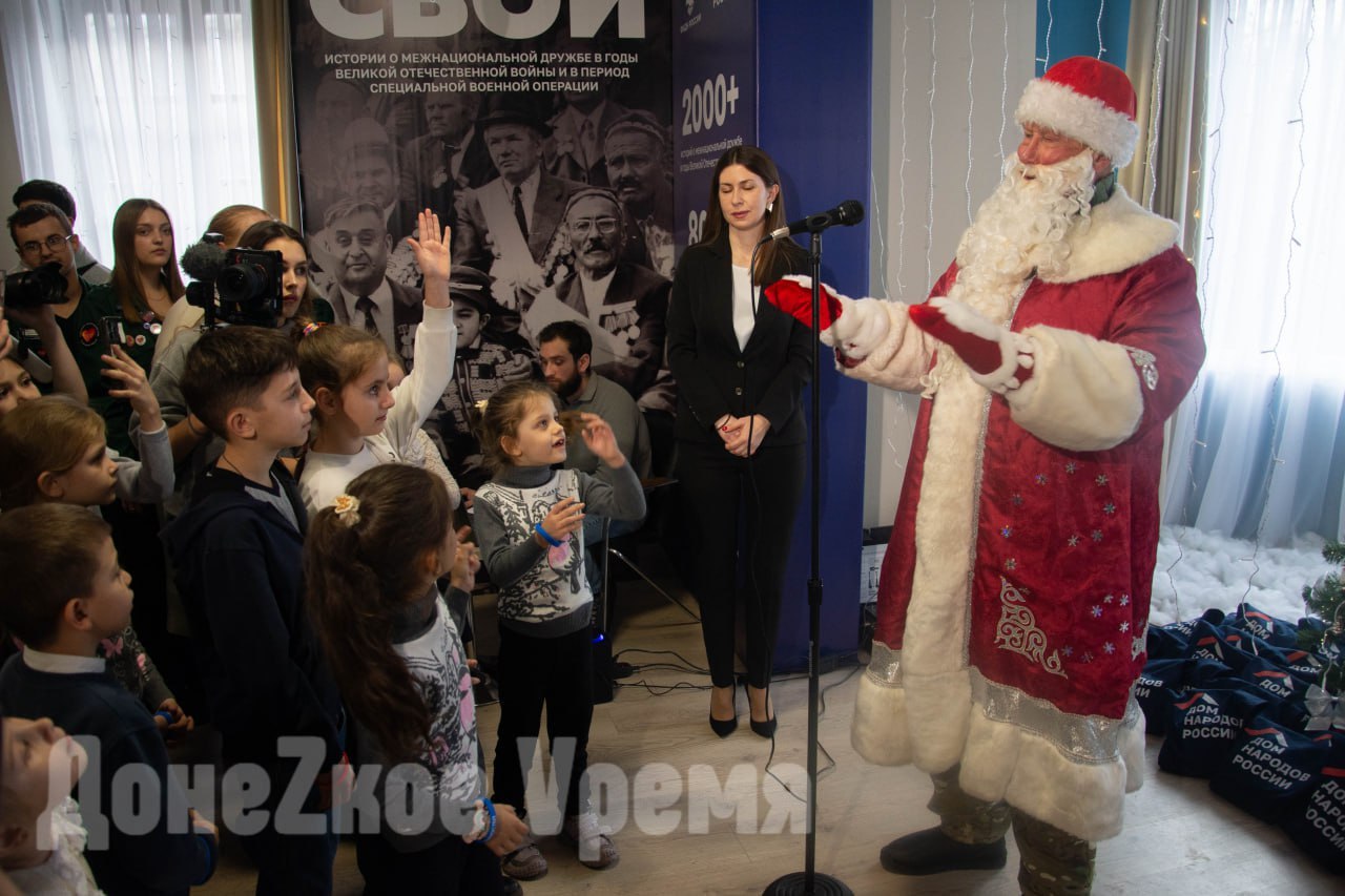 Участниками “Елки ценностей” стали 50 детей из ДНР разного возраста, в том числе представители проектов “Разгон: Фронтовики” и “Киберы”.