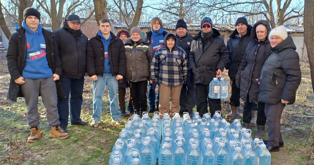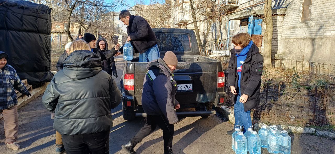 В преддверии нового года привезли продуктовые наборы. Чуть раньше, по просьбе Управы, благотворительный фонд "Колос" привез жителям обогреватели, а сегодня ребята из Молодой Гвардии Единой России доставили более пятисот литров питьевой воды.