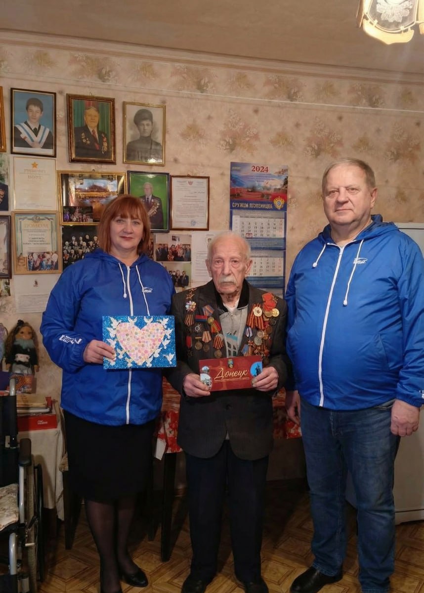 Сегодня, 26 декабря 2025 года, в рамках проекта "Старшее Поколение" реализуемого Единой Россией , управляющий делами Управы Людмила Аринович и депутат Донецкого городского Совета ДНР Михаил Рыбаков поздравили с днём рождения Иннокентия Пантелеймоновича Румянцева, ветерана ВОВ, вручили набор фруктов и поздравительную открытку от Главы муниципального образования городской округ Донецк ДНР Алексея Кулемзина.