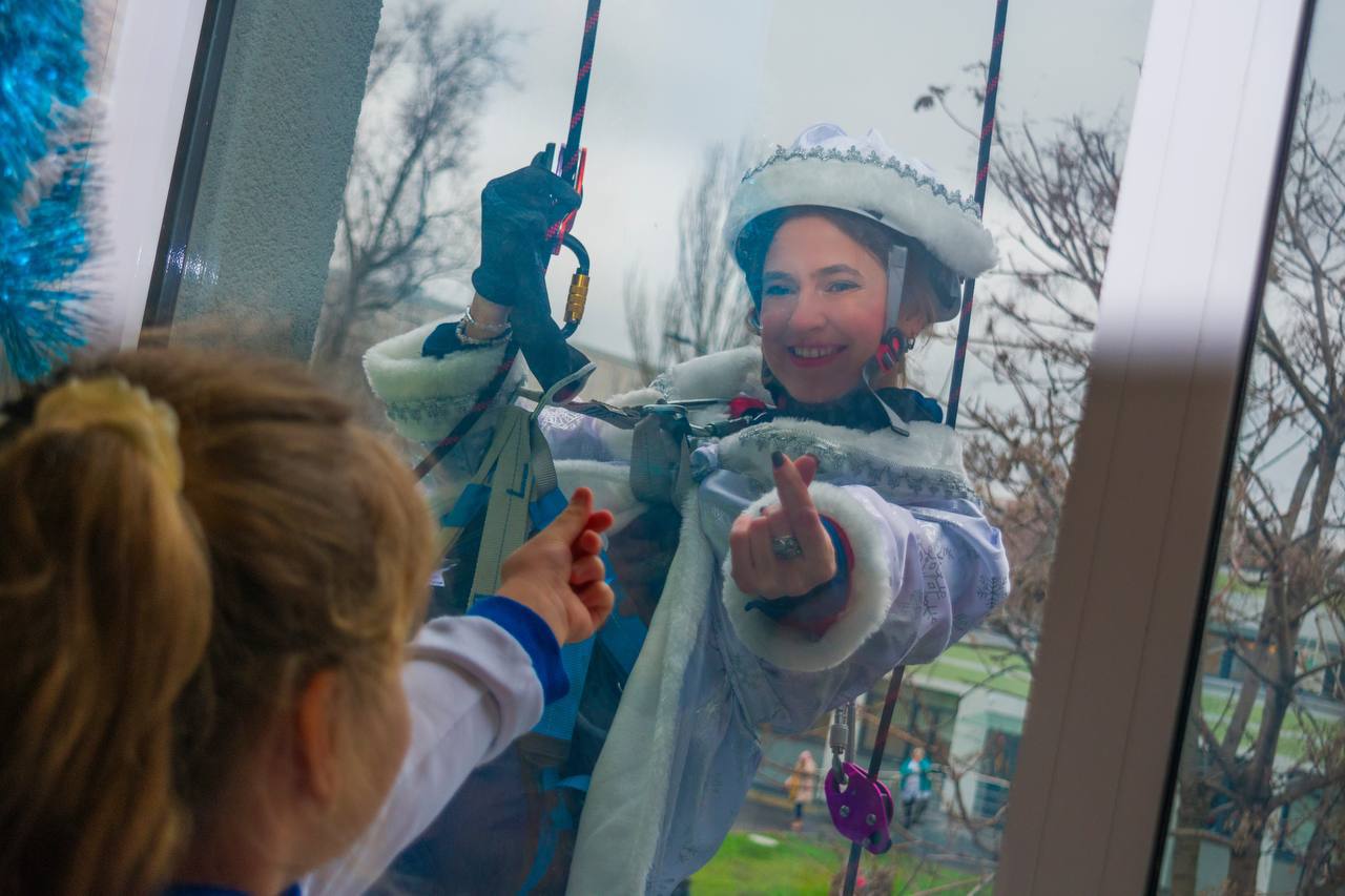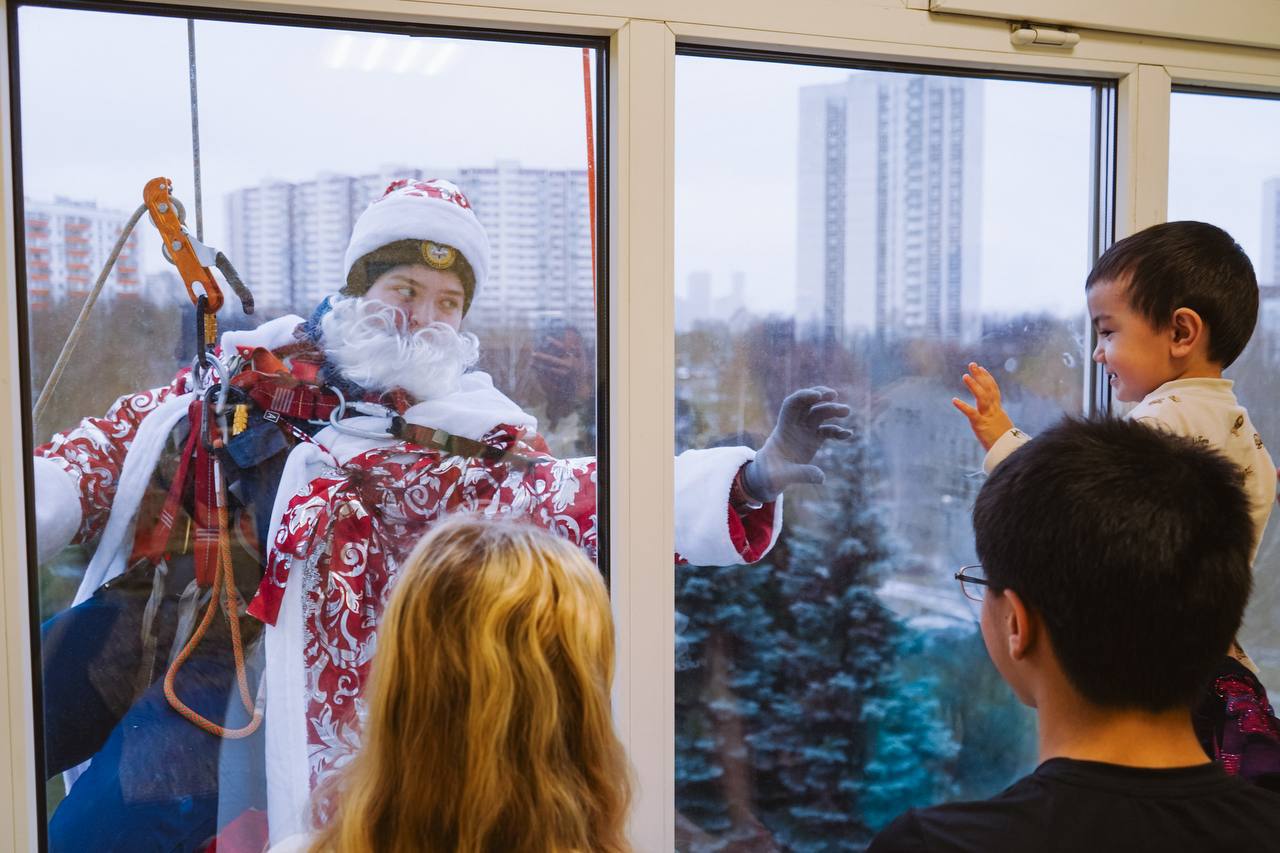Всероссийская акция «Десант Дедов Морозов» от добровольцев ВСКС проходит в разных регионах страны. Студенты-спасатели в костюмах сказочных героев при помощи альпинистского снаряжения спускаются с крыш больниц, социальных учреждений и домов-интернатов, машут в окна, чтобы подарить радость и веру в новогоднее чудо.