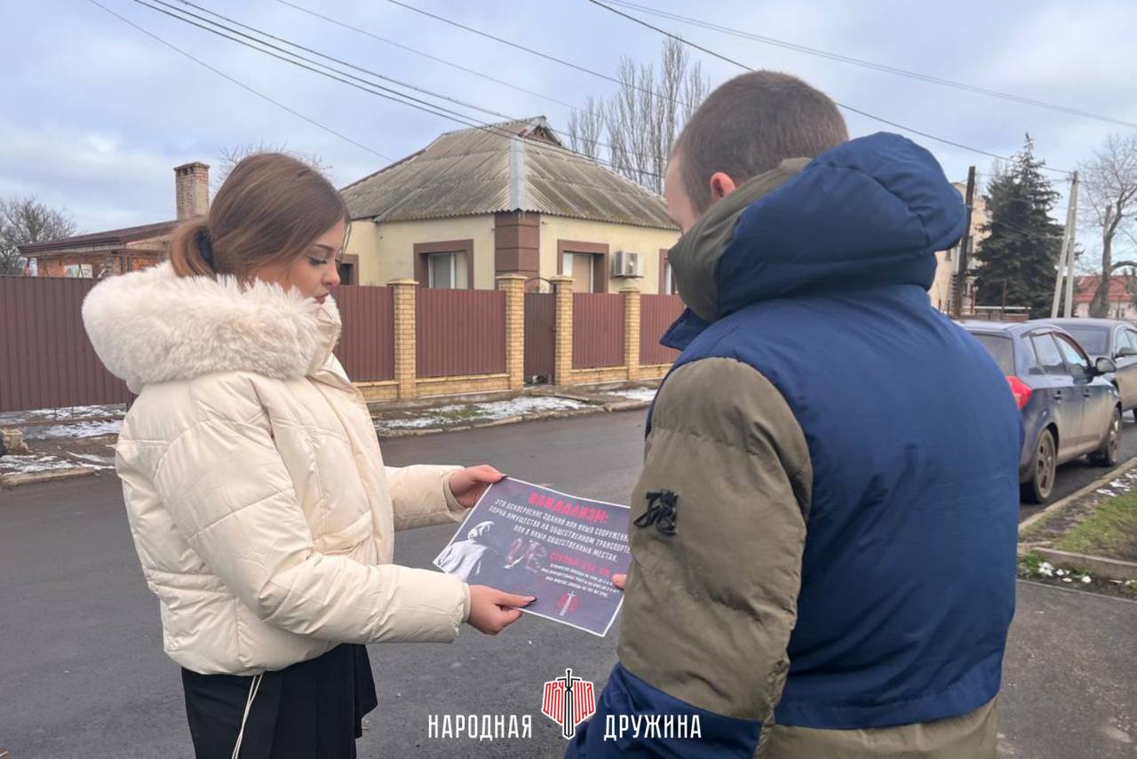 Активисты Народной Дружины Мангуша провели акцию по распространению листовок, направленных на борьбу с вандализмом.