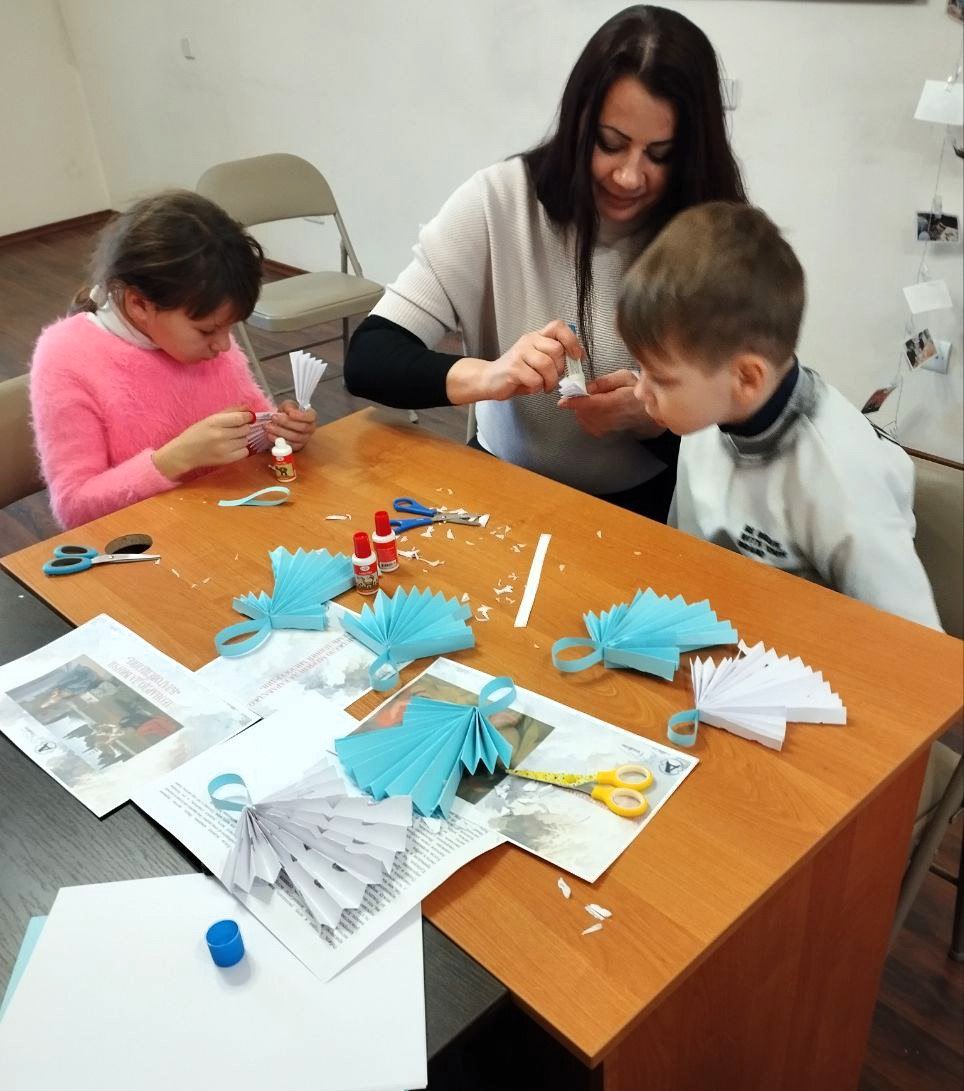 26 декабря в преддверии Нового года и в рамках проекта «Наша семья — наша Победа» дети из семей ветеранов и семей погибших защитников, состоящих на сопровождении в филиале фонда «Защитники Отечества», побывали на музейном занятии «Миллион снежинок: Геометрия зимнего чуда», которое состоялось в Донецком республиканском художественном музее.