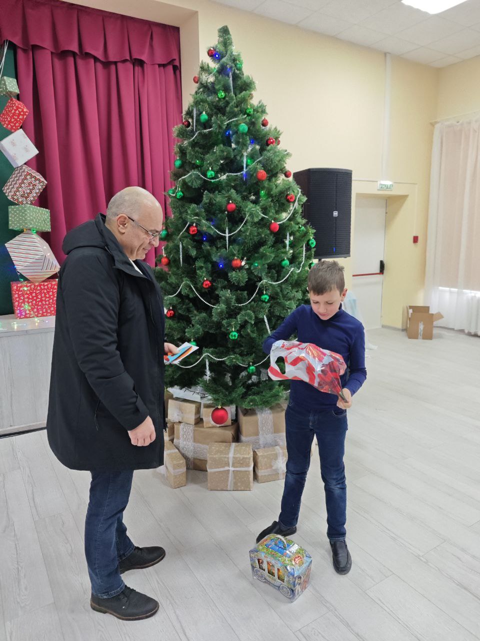 Первый заместитель главы администрации городского округа Дебальцево Максим Вельма исполнил желание юного жителя города Светлодарска. Максим Владимирович подарил Святославу умную колонку и сладкий новогодний подарок.