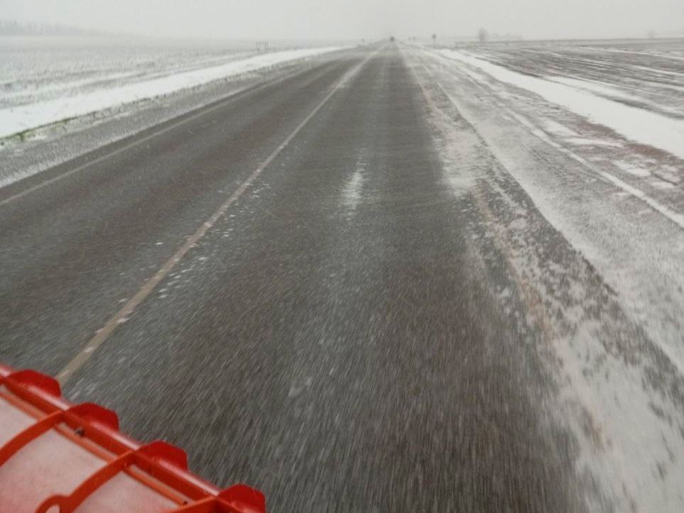 Касьяновка: покрытие мокрое, обработанное ПСС, 4 КДМ в дежурном режиме.