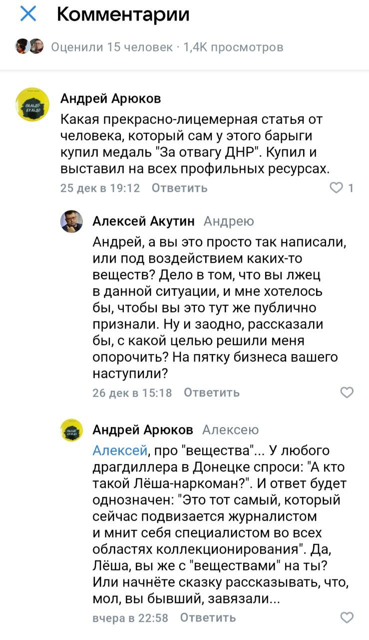 Так, после нашей публикации о торговле боевыми наградами ДНР, в определённых группах началось бурление субстанций, сопровождающееся распространением абсолютно лживой информации о вашем покорном слуге и его боевых товарищах. Видимо, мы таки сумели "наступить на хвост" занимающимся этим неблаговидным делом джентльменам (памятуя, что так называли себя морские разбойники в Карибском бассейне, я не вкладываю в это слово положительного смысла), и они решили воспользоваться потоком лжи с фейковых аккаунтов.