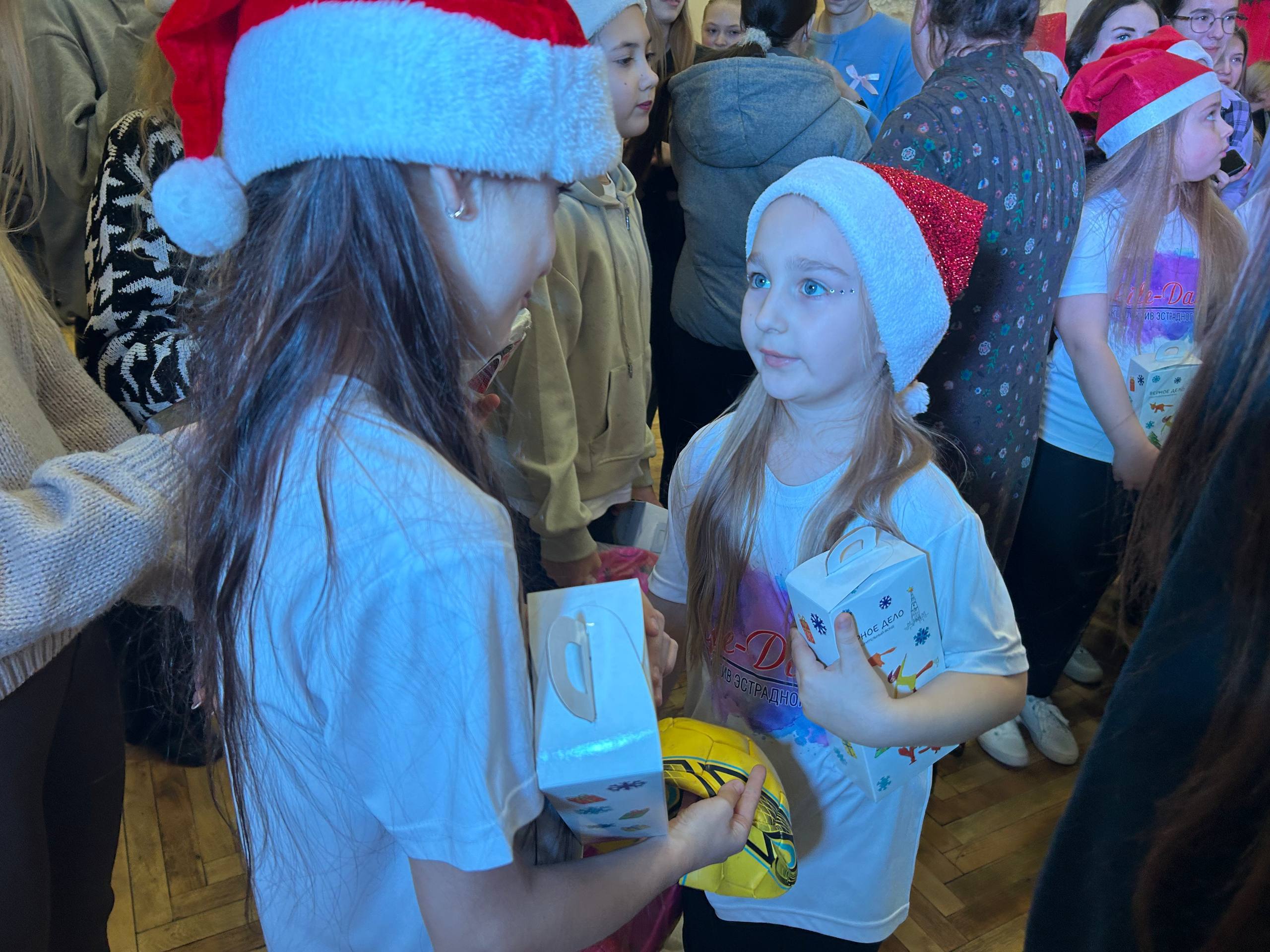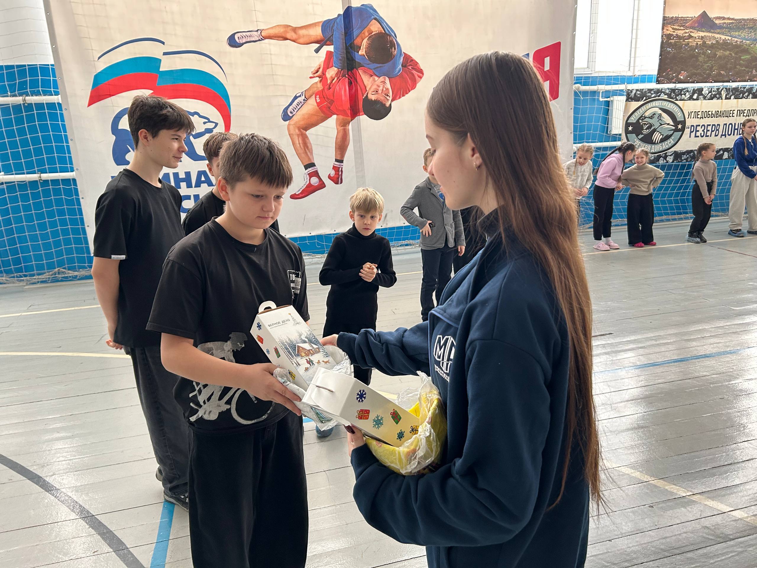 Активисты Молодёжки Шахтёрска, действуя совместно со сторонниками партии «Единая Россия» ДНР, передали подарки от благотворительного фонда «Верное Дело» юным спортсменам в ФСК «Олимп» и талантливым воспитанникам творческих коллективов Культурно-досугового объединения.