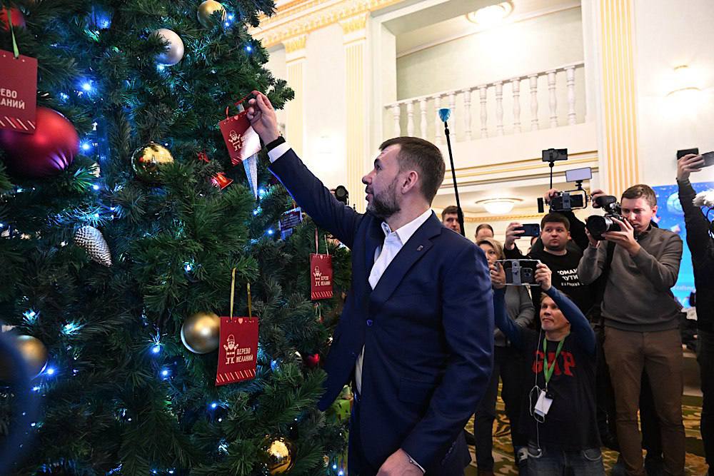 Глава Донецкой Народной Республики Денис Пушилин пообещал помочь коллективу из Харцызска осуществить новогоднее желание. Соответствующую открытку он снял с «Театральной елки желаний» во время торжественного открытия Мариупольского русского драматического театра.