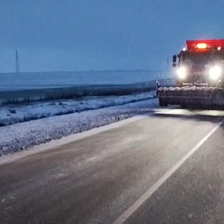 Мангуш: без осадков, покрытие сухое, местами мокрое обработанное, 4 КДМ и погрузчик в дежурном режиме.