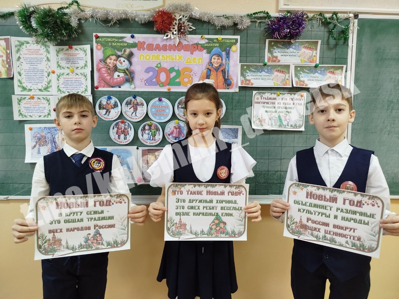 Школьники вспомнили основные атрибуты Нового года в России, обсудили семейные ценности и праздничные традиции, а интерактивное задание «Новогодние волшебники» познакомило их с Дедами Морозами из разных регионов страны. Они поделились своими планами на каникулы и обсудили, как можно поддержать тех, кто работает в праздничные дни, – врачей, спасателей, полицейских.